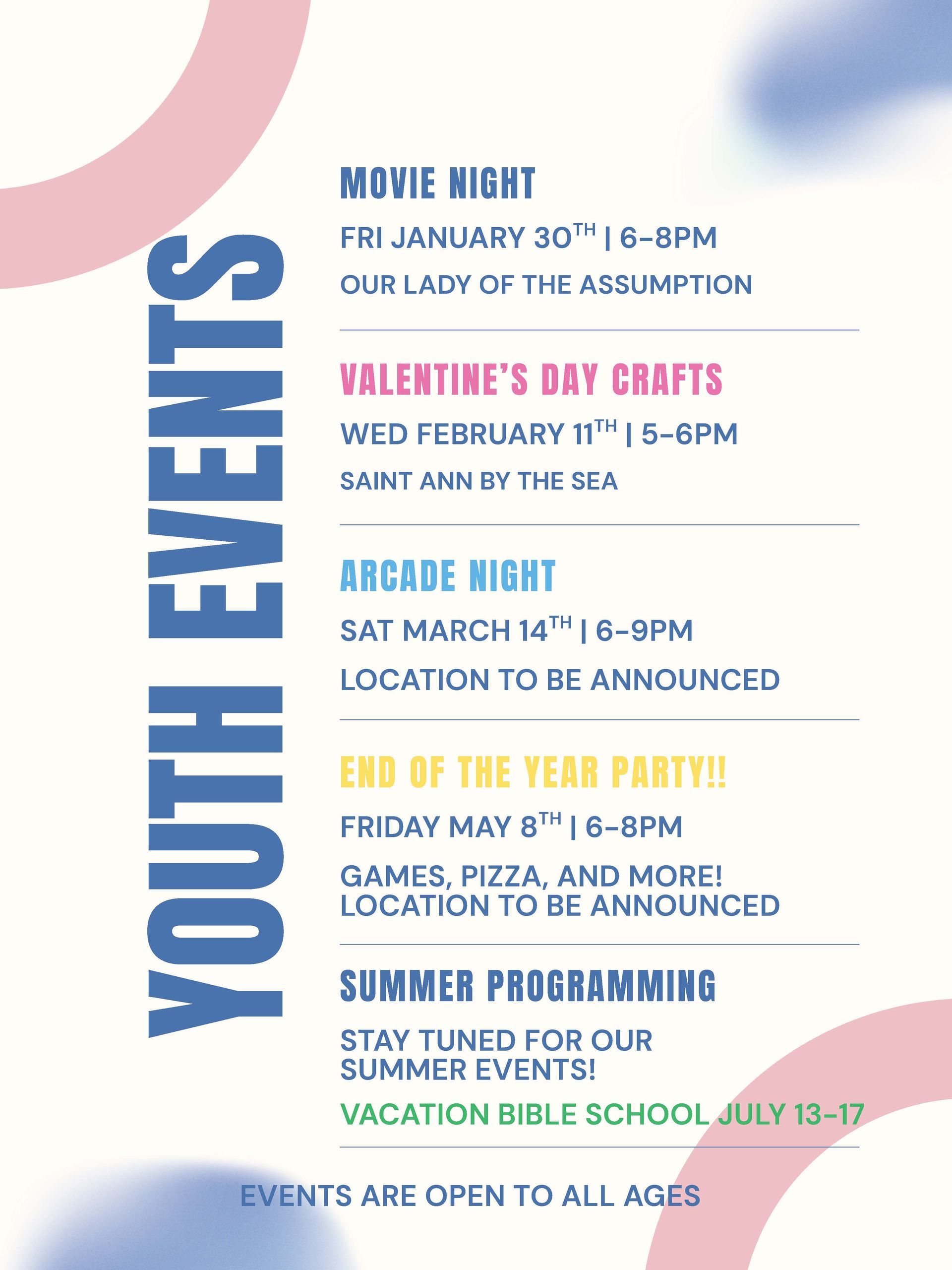 | January 30 | Movie Night | Our Lady of the Assumption | 6-8p | |
