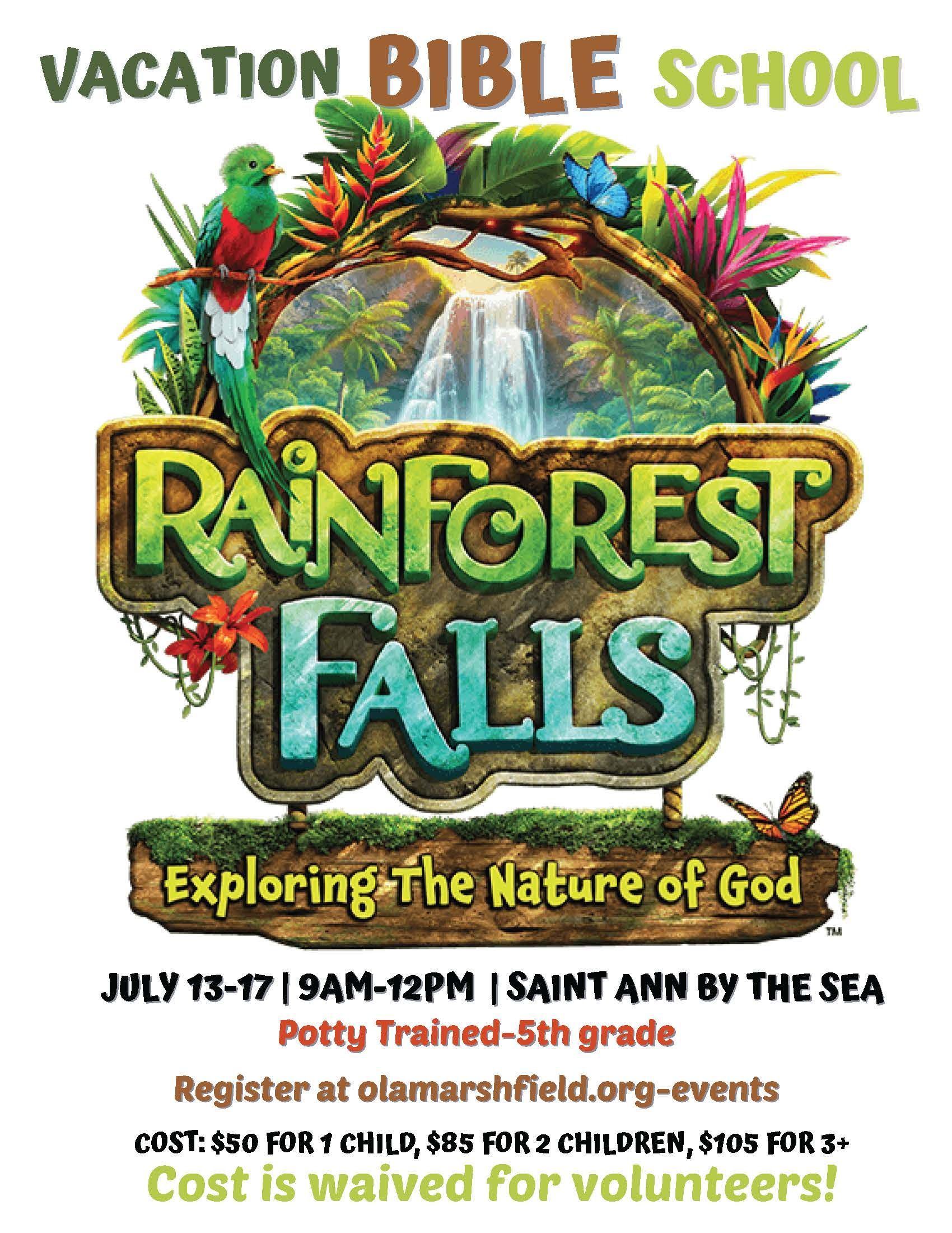 | July 13-17 | Vacation Bible School | St. Ann by the Sea | 9-12 | See below |